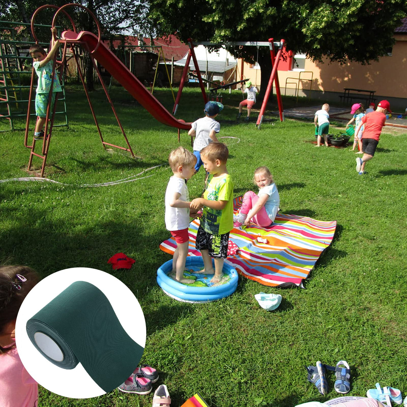 • Easy to installLawn splicing with simple operation. There is no need to use tools, just tear off the PE film, and stick it to the back of artificial grass. Comparing with the complicated lawn glue splicing process, only one person can finish the lawn fixing work.