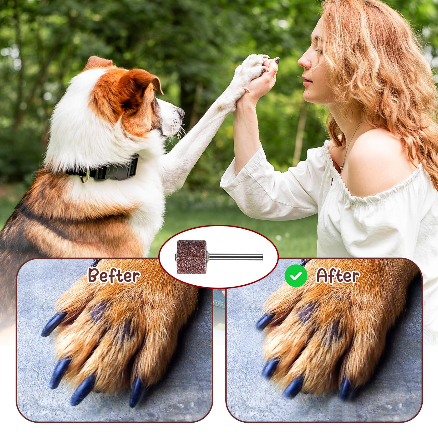 - Safe and Sturdy:The paws nail grinder attachment are crafted from high-quality materials and cylindrical shape design, providing a safe and efficient solution for dog toenail grinder needs, ensuring your pet's nails are smooth and well-maintained.