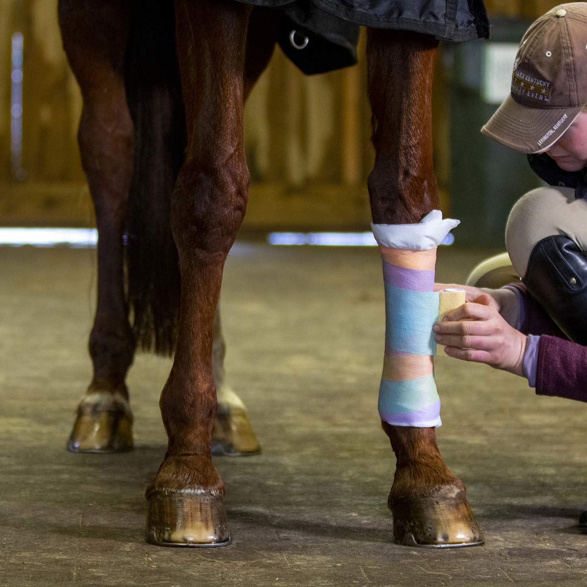 - This multi-colored horse bandage was made specifically for veterinary applications