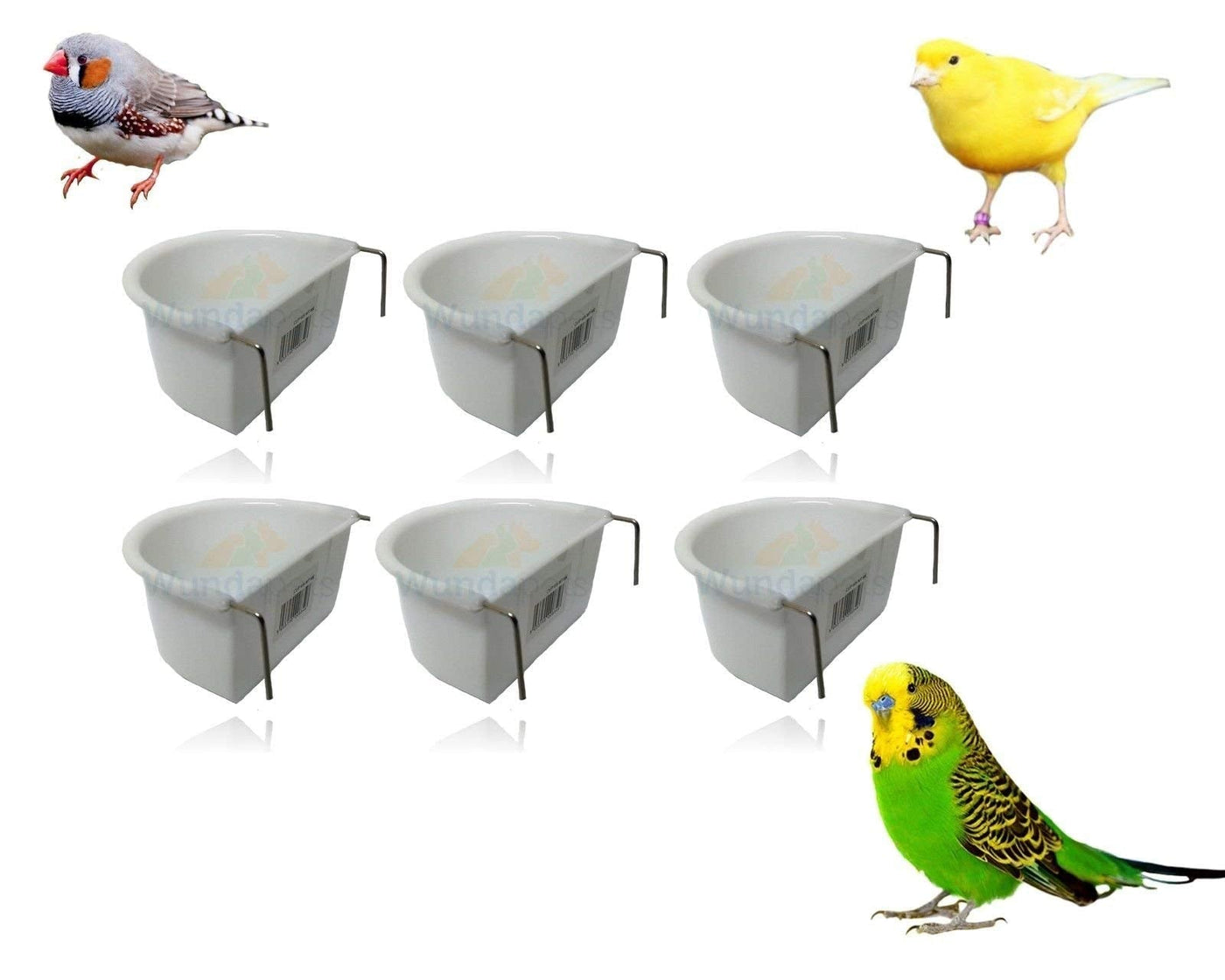 *NEW* 6 PACK WUNDAPETS 6.5 CM D-SHAPE PLASTIC BIRD BUDGIE CAGE HANG ON FEEDER COOP CUP