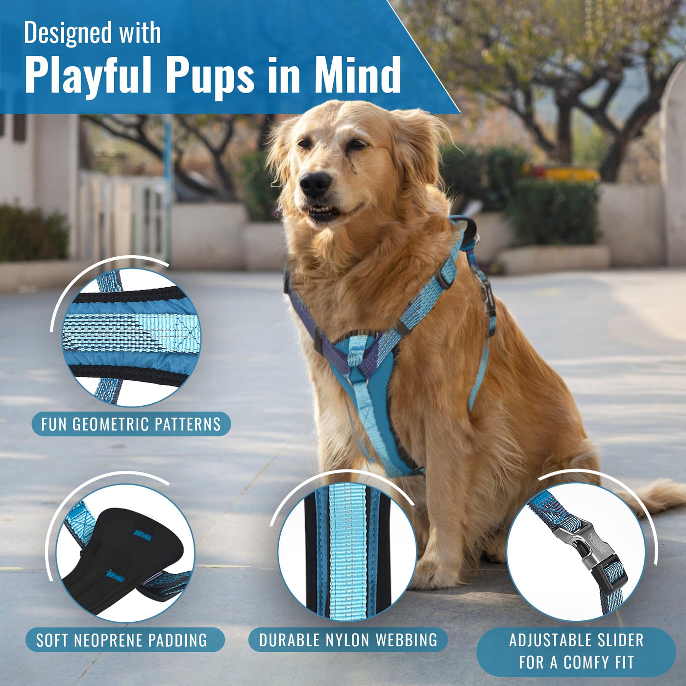 - COMFORTABLE FIT & PROTECTION The ergonomic Y-shaped design and neoprene-padded chest panel provide a secure, pressure-distributing fit, preventing choking. This no-pull dog harness is ideal for long walks and hikes.