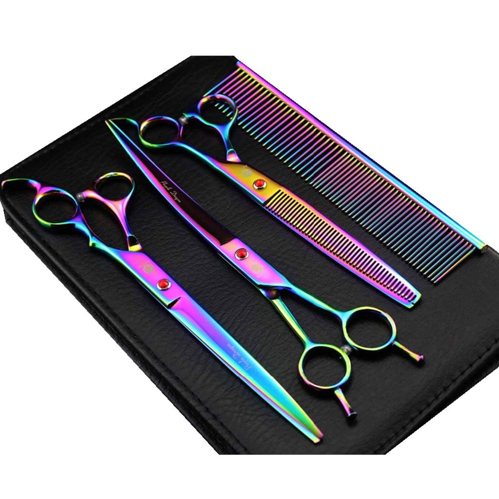 Purple Dragon 8.0 inch Dog Hair Cutting, Curved and Thinning Scissors Shear Pet Grooming Tool Kit Multicolor