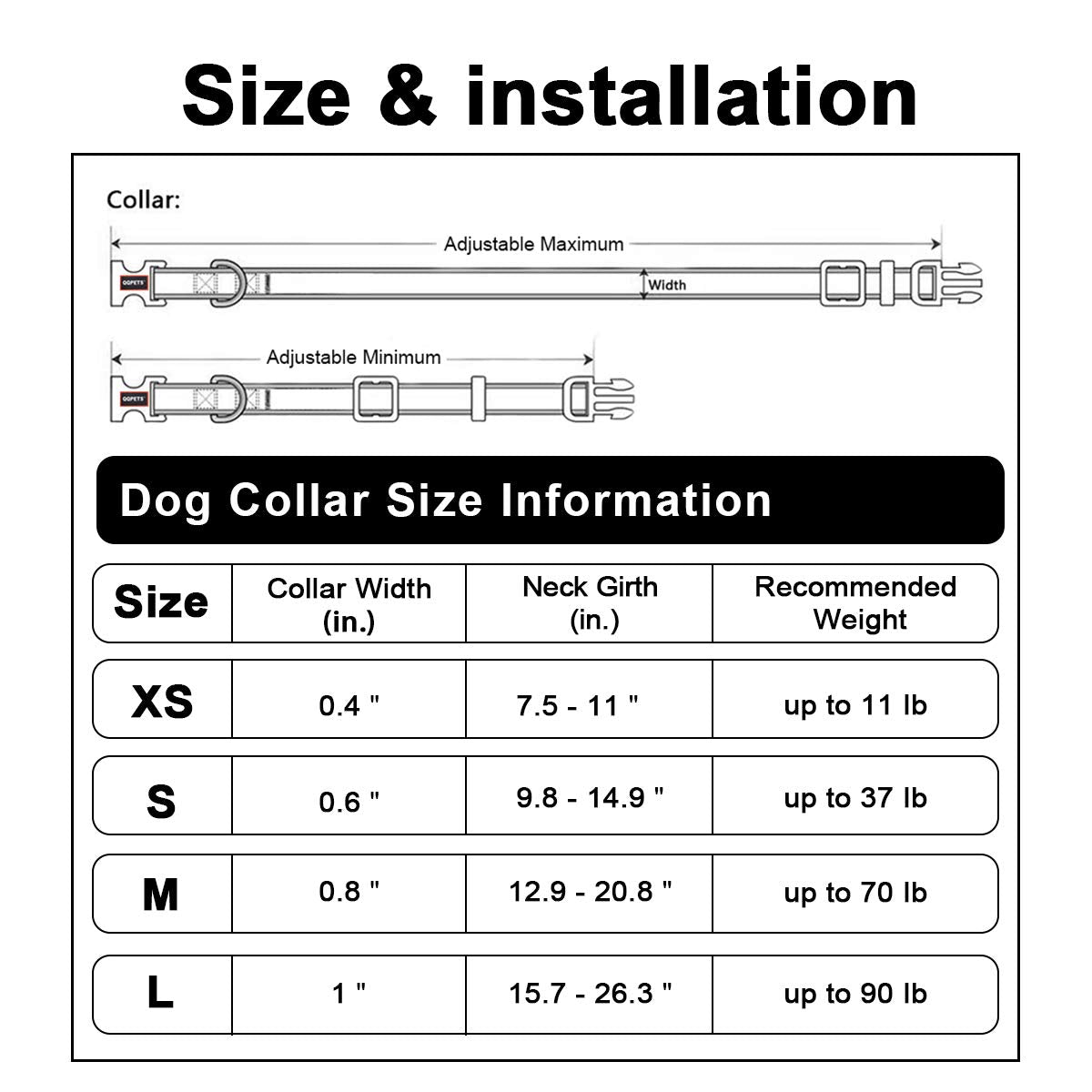 - 4 SIZES COULD CHOOSESmall size is 0.6 inch width, and the Neck is 9.8"-14.9". Medium size is 0.8 inch width, and the Neck is 12.9"-20.8". Large size is 1 inch width, and the Neck is 15.7"-26.3". Please measure size before purchase.