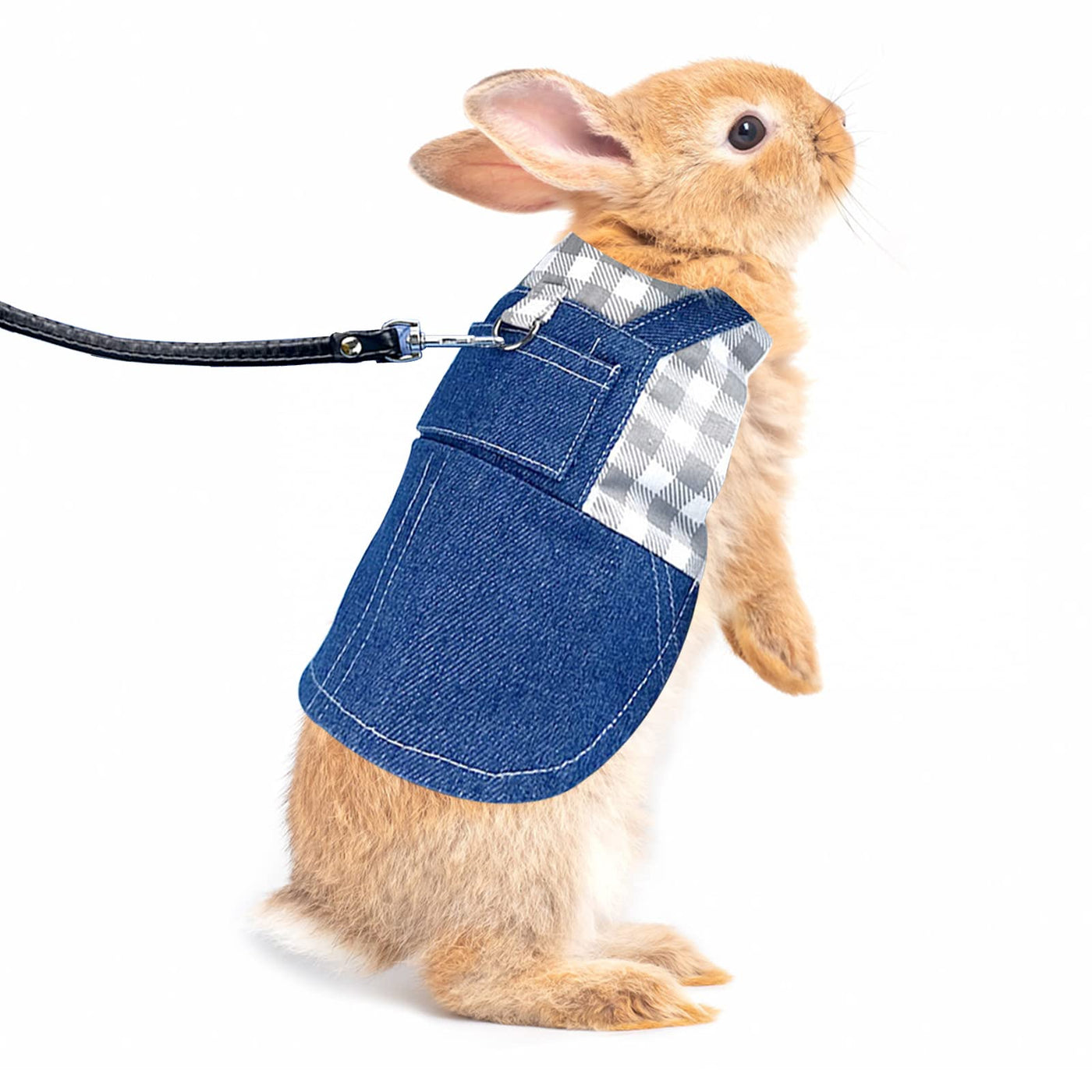 It is a great option for your furry one Friend to have fun wearing a bunny vest harness. Adjustable Rabbit Harnesses With alloy buttons and leather leash, it can be closed quickly and stay tight, it can be used to protect your pet when you go out, avoid your pet running around and losing it, and it can also keep your pet safe Give small animals a good wearing experience Made of high quality cotton and denim material, good breathability, abrasion resistant and no pilling, good stitching ensures good durability to make your rabbit feel comfortable. Great for going out. Suitable for ferrets, mice, chinchillas, piglets, guinea pigs, hedgehogs, hamsters, rabbits, mice, rabbits, squirrels and other cute animals for going out. Running, hiking, camping, picnic and other outdoor activities. Carrying stairs 1. Adjust the rabbit harness to a size larger than the pet's body 2. Fasten the safety buckles on the neck and chest alternately 3. Adjust the rabbit harness Specification: Material: Cotton, Denim, Leather Color: gray, red, yellow Size: S: neck circumference: 17-25cm, chest circumference: 25-37cm M: neck circumference 19-25cm, chest circumference 25-37cm L: neck circumference: 21-34cm, chest circumference: 21-34cmcm The package includes: 1 x Adjustable Rabbit Harness with Elastic Leash