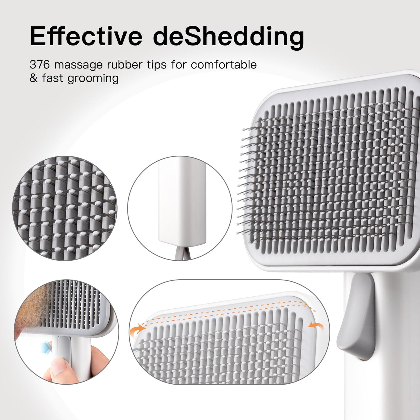 - High-Efficiency Loose Hair Capture - Engineered with wide brush head and maximum 376 massage rubber tips provides a gentle and efficient loose hair capture, reducing shedding and keeping your home cleaner.