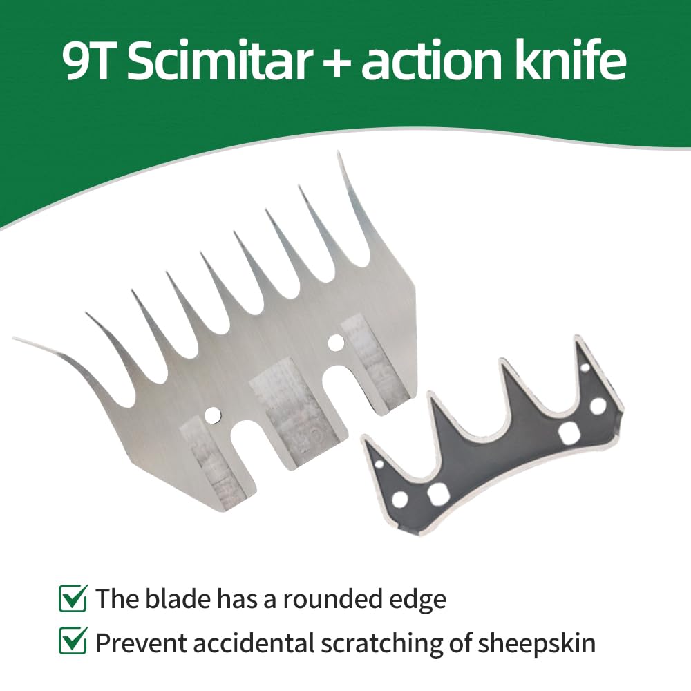 Sheep Shears Blades 9-Tooth Wool Shearing Comb and Cutter Blade Set for Alpaca Goats Wool Cutter Grooming Trimmer(9T Scimitar+Front Blade) 9T scimitar+front blade