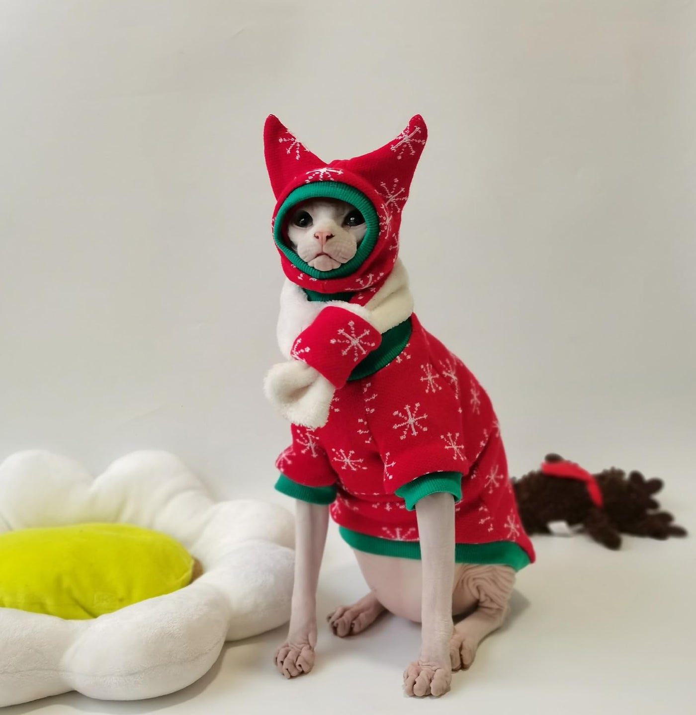 - Elegant DesignThis Christmas hairless cat clothes is suitable for Sphynx, Devon Rex, Cornish Rex, and Peterbald cats. This cat pajama set includes cat clothing, hat, and scarf.