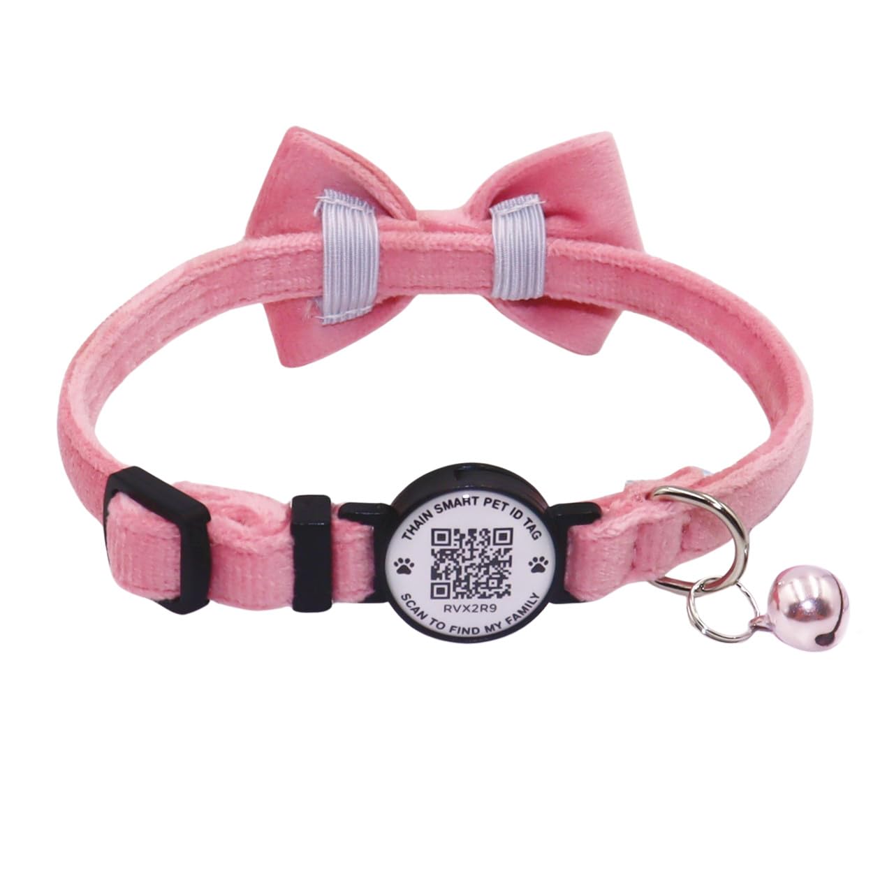THAIN Personalized Cat Collar with bell and Bowtie Breakaway QR Code Name Smart ID tag quick release soft comfortable collar for cats and kittens (Pink) Pink