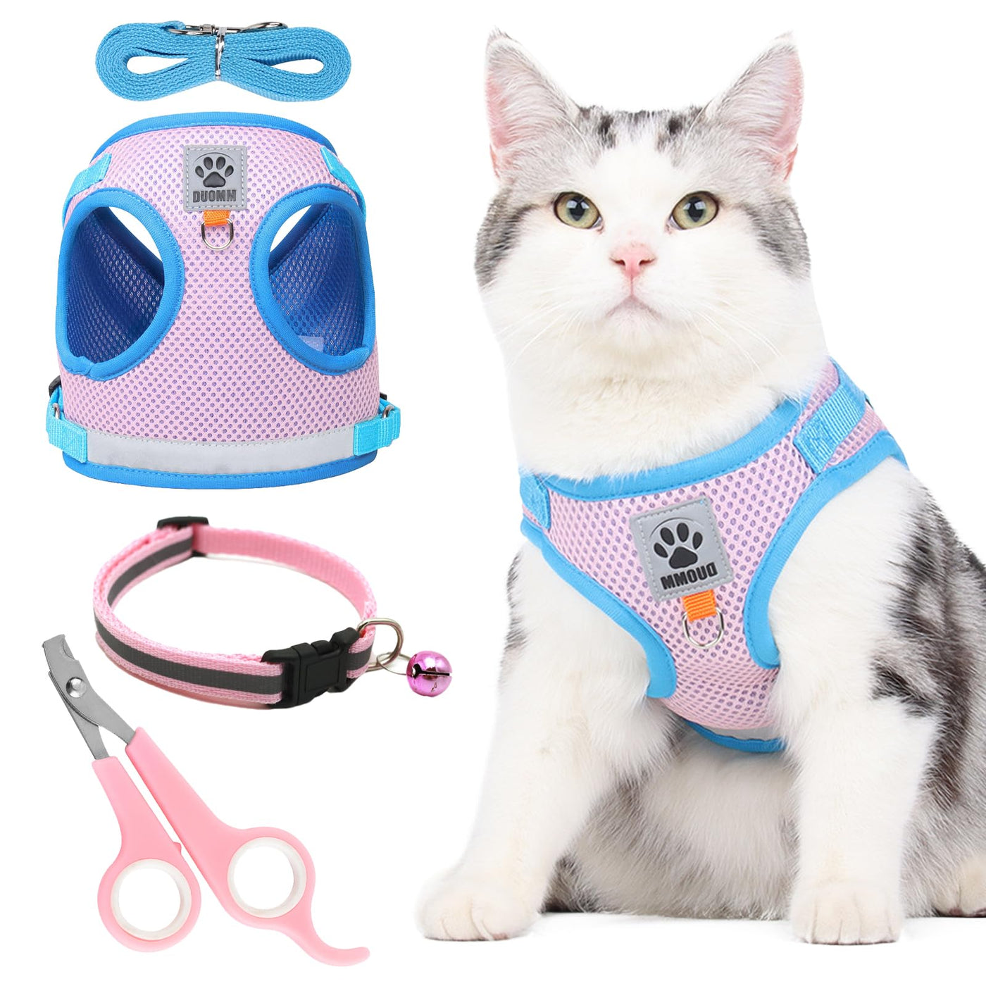 - Cat harness set with Leash1 x Cat Harness(S) and 1 x Cat Leash, 1 And has a soft, breathable mesh edge that provides extra comfort and protection.