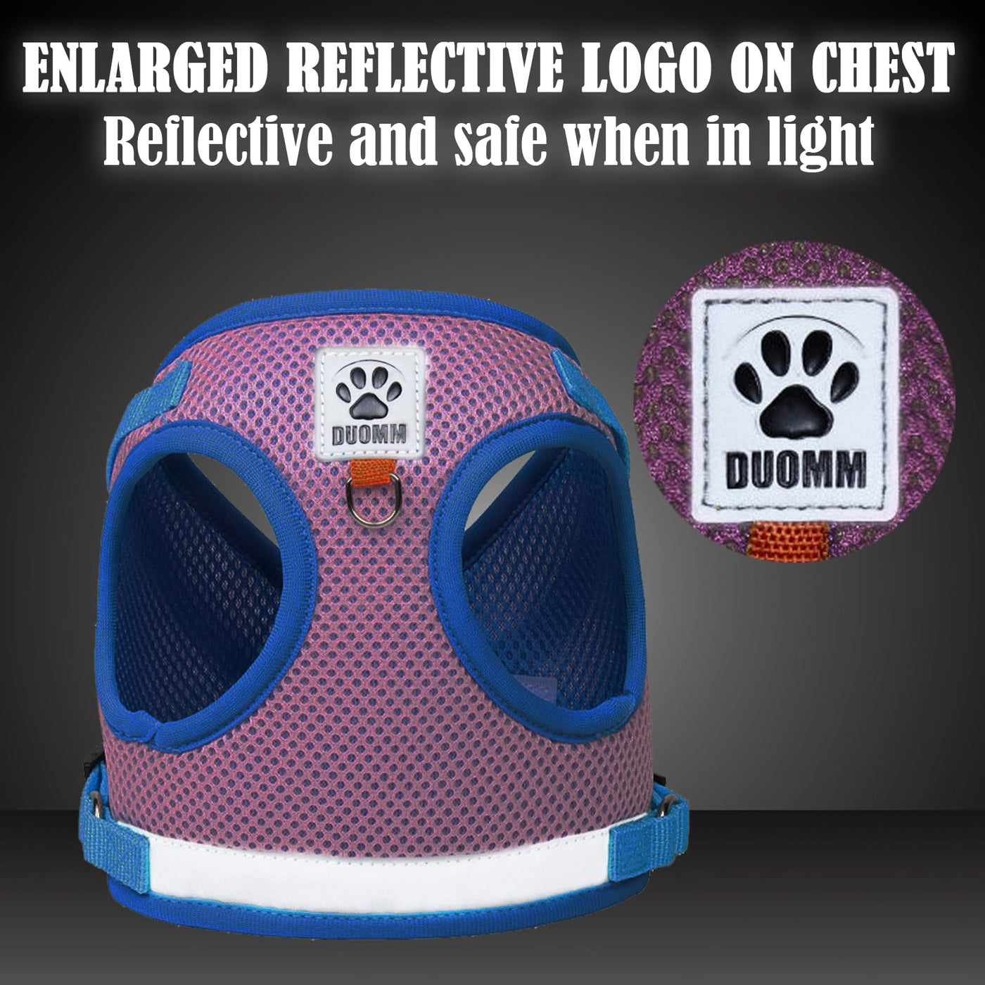- Reflective DesignTo increase safety, our cat harness features a reflective stripe design to keep your kitty visible even at night. The vest design can distribute the pressure evenly on the chest and shoulders. Make it safer and more comfortable.