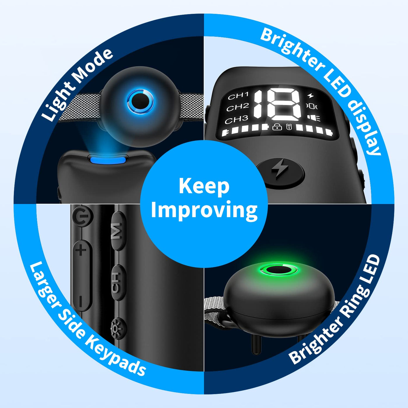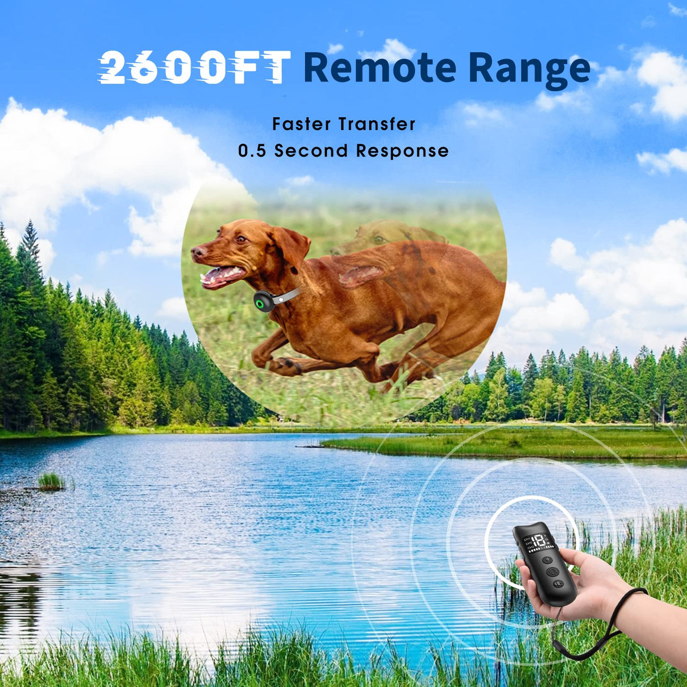 - UPGRADED REMOTE - Larger keypad,Brighter Large display, 2600FT control range, it's perfect for eyes-free operation to train your dogs anywhere, anytime.
